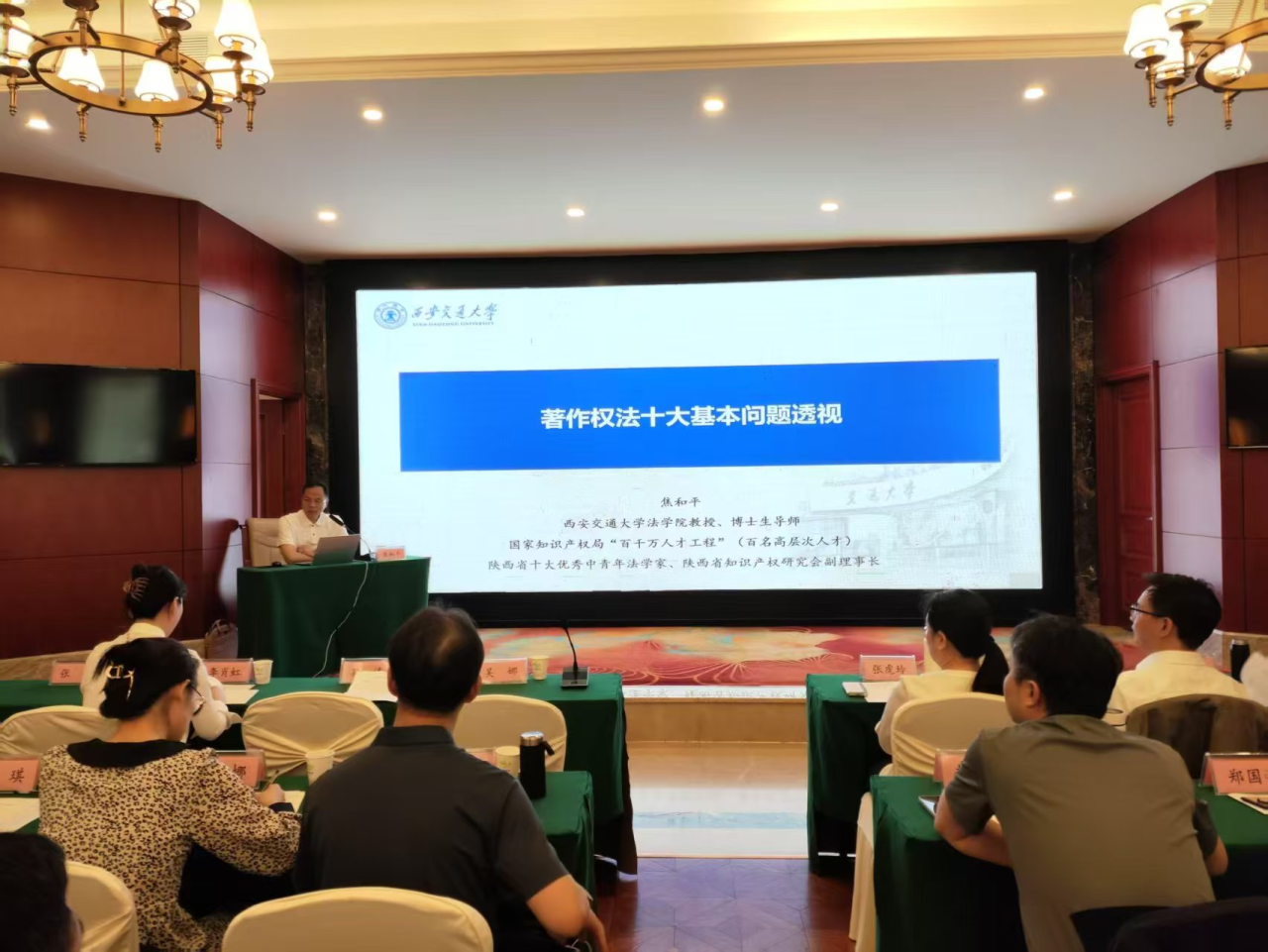 中共中央宣传部版权管理局执法监管处二级调研员叶婷婷、西安交通大学法学院教授焦和平、陕西省高级人民法院民三庭庭长胡晓晖、陕西省人民检察院知识产权检察部副主任吴娜、西安市公安局环食药支队法制科科长何旭分别围绕版权行政执法、版权司法、版权检察、版权行政执法与行刑衔接等问题进行专题授课。