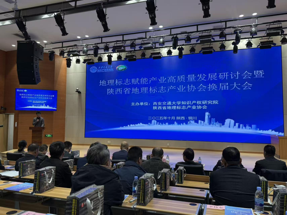 2025年10月18日,“地理标志赋能产业高质量发展研讨会暨陕西省地理标志产业协会换届大会”在陕西铜川照金干部学院顺利举行。本次会议由西安交通大学知识产权研究院和陕西省地理标志产业协会共同主办,会议邀请到来自政府、产业界、企业、高等院校的诸位领导专家出席本次会议,除此之外,参会人员还包含陕西省地理标志产业协会的众成员以及西安交通大学知识产权研究院的博士生、硕士生共计一百余人。