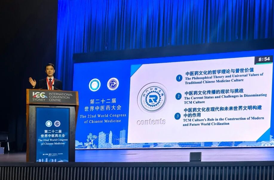 2025年10月31日-11月1日,由世界中医药学会联合会(以下简称“世界中联”)主办的第二十二届世界中医药大会在澳大利亚悉尼隆重举行。本次大会以“全球视野下的中医药文化传播与科技创新”为主题,吸引了来自澳大利亚、巴西、加拿大、中国、斐济、法国、德国、中国香港、日本、中国澳门、马来西亚、新西兰、菲律宾、葡萄牙、俄罗斯、新加坡、南非、韩国、西班牙、中国台湾、泰国、英国、美国、越南等全球24个国家和地区的800余名中医药专家学者、政府官员、产业代表参会。西安交通大学知识产权研究院院长、一带一路知识产权国际合作与交流中心主任马治国教授应邀参会,并在综合学术论坛上发表了题为《中医药文化传播与国际文明互鉴》的演讲报告。