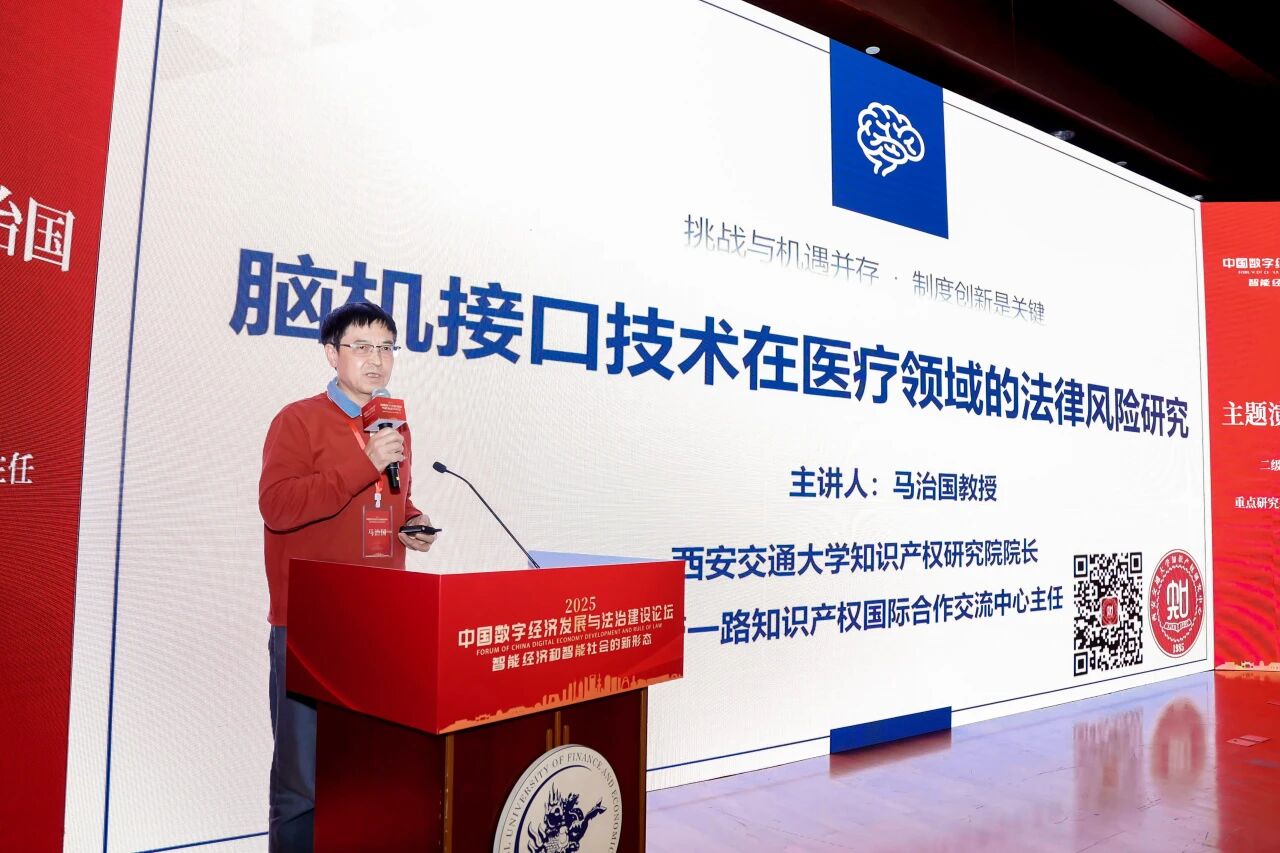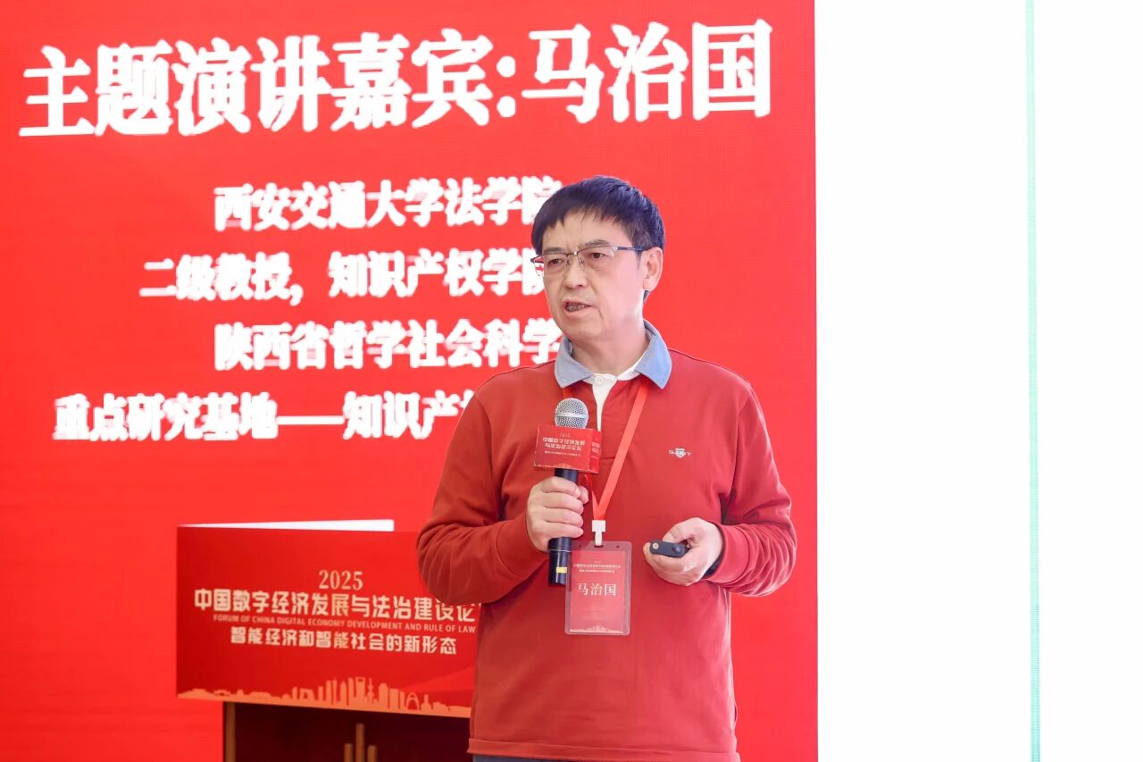 西安交通大学知识产权研究院院长、一带一路知识产权国际合作交流中心主任马治国教授,于2025年11月15日下午出席了在中央财经大学学院南路校区举办的“2025中国数字经济发展与法治建设论坛”,并在“人工智能+”开放创新环节作主题演讲。