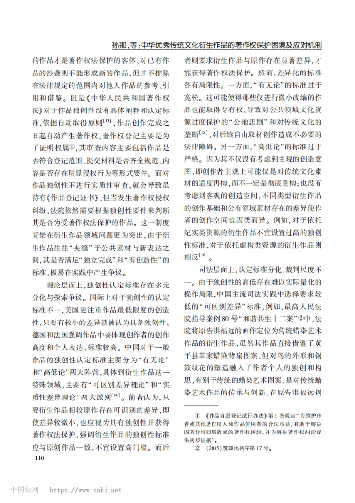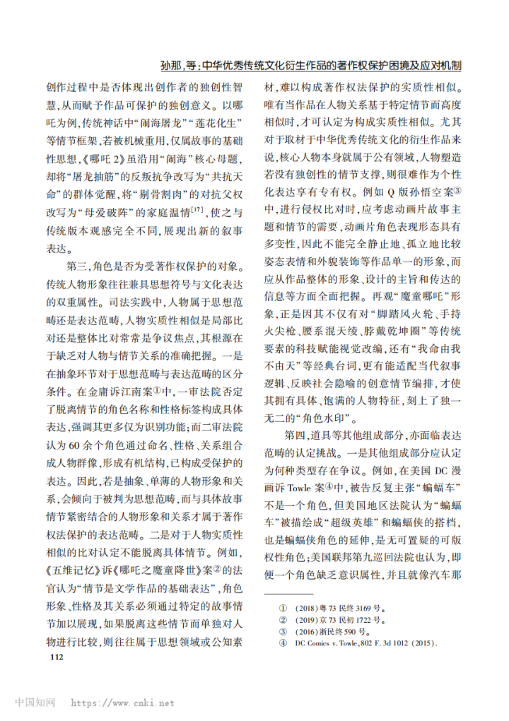 摘要:中华优秀传统文化的保护与开发是提升国家文化软实力的重要战略。以《哪吒之魔童闹海》为研究对象,聚焦中华优秀传统文化衍生作品在著作权法下的保护困境,揭示中华优秀传统文化衍生作品在法律适用中遇到的主要障碍。研究发现,独创性标准在立法层面不具体、理论层面有分歧、司法层面未统一,中华优秀传统文化衍生作品的思想范畴难从具体的表述中分离出来,而其中的传统素材在衍生作品整体表达中识别难度也较高。研究表明,应构建以中华优秀传统文化数据库为核心的中华优秀传统文化衍生作品著作权治理机制;以素材依赖程度为评判基准,建立衍生作品独创性认定的分类适用路径,实现著作权差异化保护;将特征具体性、表达独创性和识别稳定性纳入受法律保护的考量因素,并在此基础上综合评估其商业价值和社会公共价值,从而实现创新激励与公共利益的平衡,推动中华优秀传统文化的创造性转化与创新性发展,提升中国的文化竞争力和国际影响力。